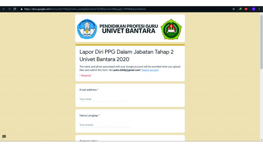 Sabtu (08/08/2020), Pelaksanaan lapor diri Pendidikan Profesi Guru (PPG) FKIP Univet Bantara Sukoharjo dalam jabatan (Daljab) angkatan I tahap II 2020 yang dilaksanakan secara daring, mahasiswa harus mempersiapkan berkas sebagai berikut: