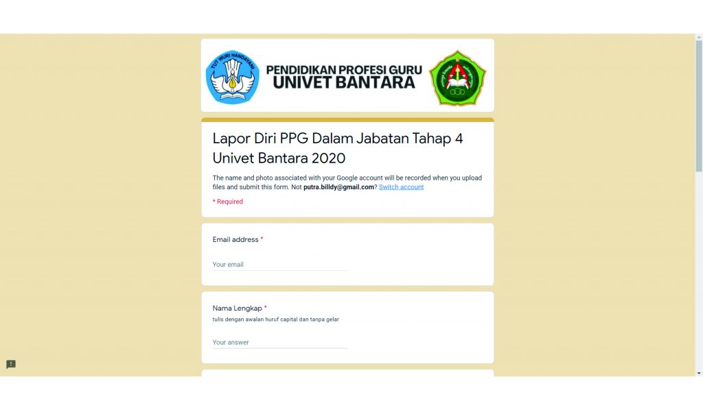 Senin (31/08/2020), Pelaksanaan lapor diri Pendidikan Profesi Guru (PPG) FKIP Univet Bantara Sukoharjo dalam jabatan (Daljab) angkatan I tahap IV 2020 yang dilaksanakan secara daring, mahasiswa harus mempersiapkan berkas sebagai berikut: